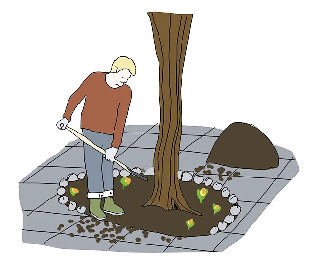 Langs de randen van het plein werden bakken vol rode, oranje en roze bloemen geplaatst. Tegels werden gewipt om plaats te maken voor bloemvakken. Het nieuwe groen zorgde voor koelere plekken op hete zomerdagen en kon water opnemen bij grote regenval: mooie klimaatadaptieve ingrepen die nodig zijn voor een leefbare stad in het veranderende klimaat.