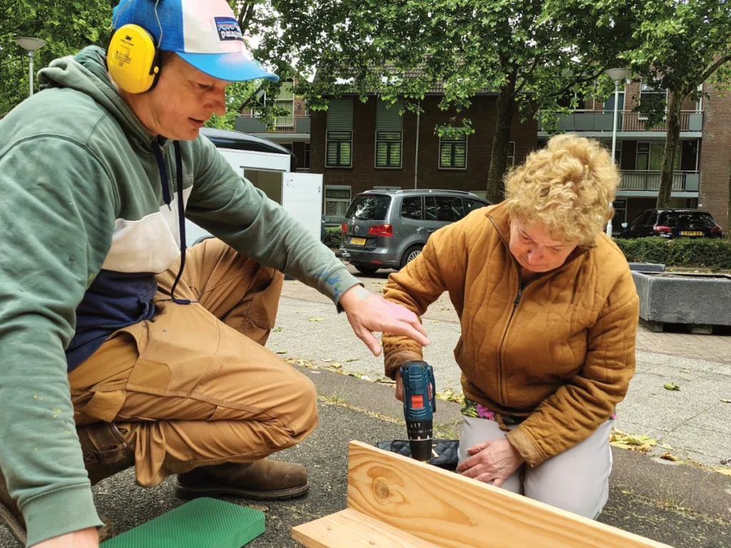 Op 4 juli werd op feestelijke wijze de metamorfose van het Evenaarplein gevierd. Wat ooit een stenig, leeg plein was, was in korte tijd veranderd in een kleurrijke en uitnodigende plek vol groen, zitplekken en ruimte voor ontmoeting. Samen met bewoners van Oosterflank werd er wekenlang gebouwd, geplant, geschilderd en geschroefd. Door hitte en regenbuien heen. De afsluiting van het placemaking traject werd dan ook echt een feestje, vol activiteiten, ontmoetingen en verhalen van de mensen die het plein nieuw leven inbliezen.