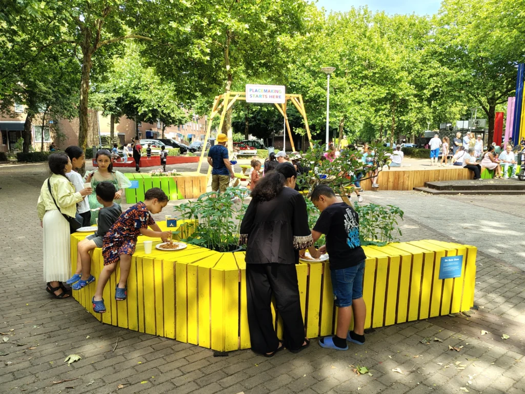 ​Placemaking is een waardevol proces van testen en leren. Het is geen tijdelijke ‘leuke actie’, maar bouwt voort op de lokale energie die er is. Het kan klein beginnen, met een gesprek, een kleurrijke picknicktafel of een grote pan soep. Groene placemaking stimuleert vergroening van de buitenruimte én tegelijkertijd ook ontmoeting in de wijk. Zo werk je samen met bewoners aan een klimaatadaptieve wijk. Een wijk die zich aanpast aan een veranderend klimaat.