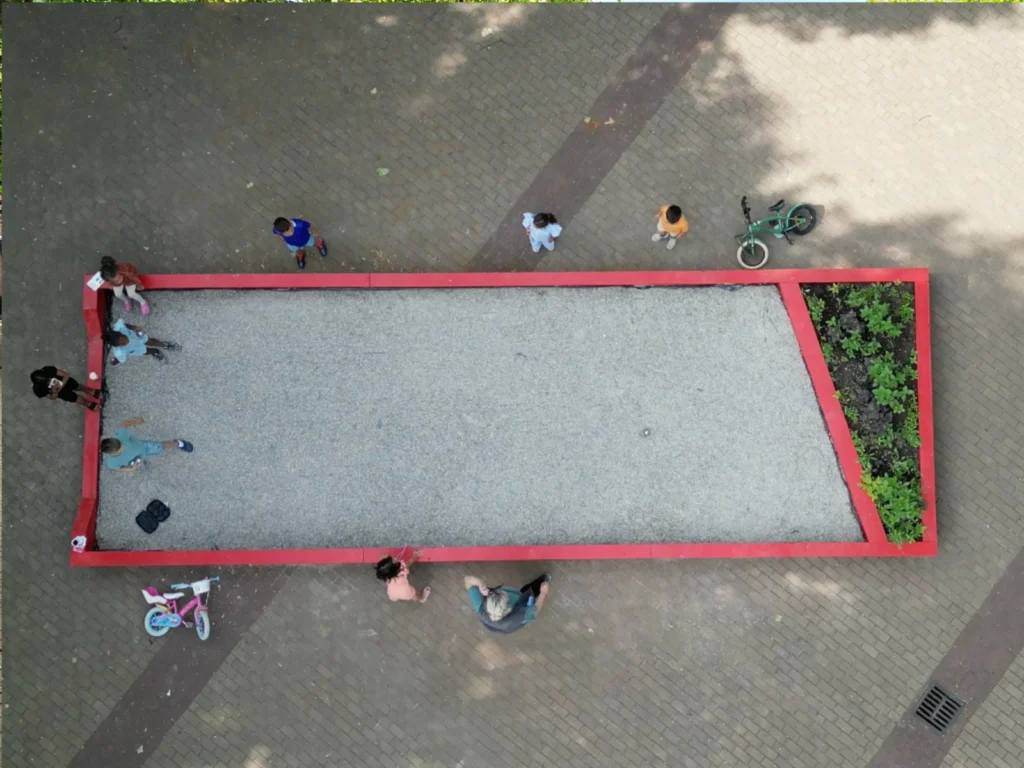 In plaats van de vloer werd gekozen voor het bouwen van houten objecten die in vrolijke kleuren geschilderd werden. Studio Bas Sala verwerkte de ideeën van bewoners in het ontwerp voor drie houten objecten en bereidde de materialen voor. Samen met bewoners werden de objecten in elkaar getimmerd. Sommige deelnemers hielden voor het eerst in hun leven een schroeftol vast, anderen hadden meer ervaring. Kennis en kunde werden zo gedeeld en het plein kreeg er drie opvallende nieuwe toevoegingen bij.